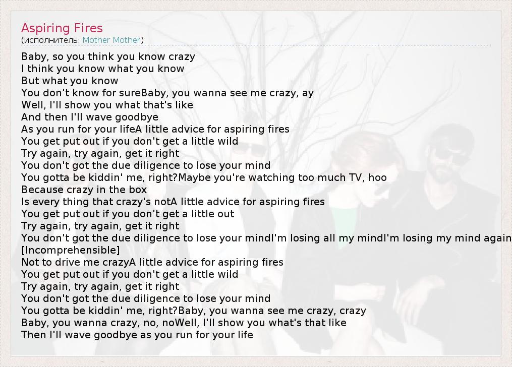 А как ты думаешь, о чем песня "Aspiring Fires" ?