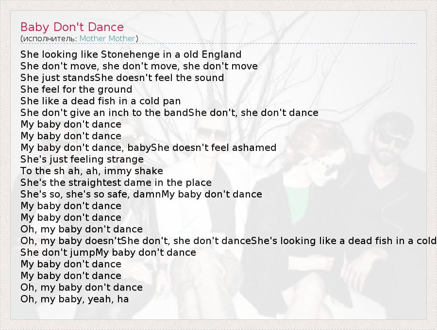 А как ты думаешь, о чем песня "Baby Don't Dance" ?