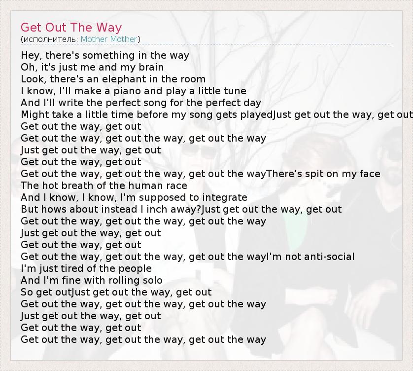 А как ты думаешь, о чем песня "Get Out The Way" ?