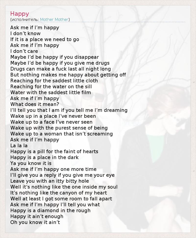 Это интересно:Группа Mother Mother начиналась как семейное дело. Гитарист и певец Райан Галдемонд писал песни и хотел исполнять их в местных клубах. Но почувствовав, что не хватает полноты звука для общей гармонии, он пригласил свою сестру Молли. А Молли, в свою очередь, позвала свою подругу Дебру-Джин Крилман, и таким образом группа зазвучала в трио, завоевав огромный успех у публики.... продолжение