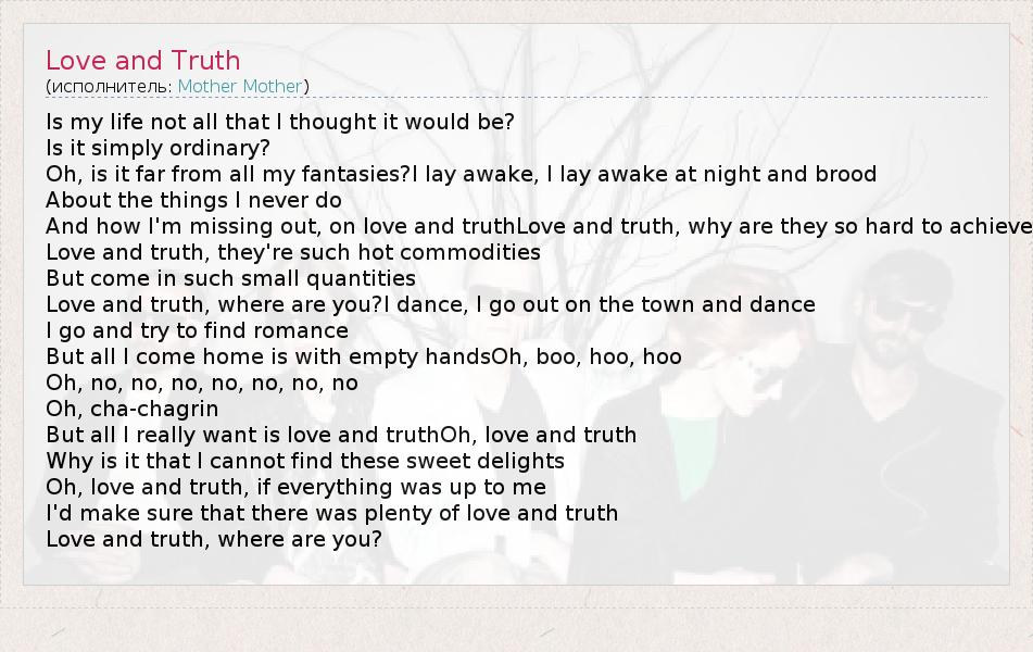 А как ты думаешь, о чем песня "Love and Truth" ?