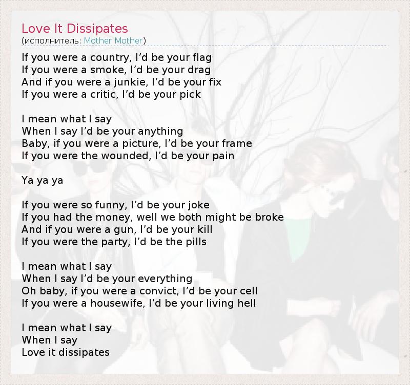А как ты думаешь, о чем песня "Love It Dissipates" ?