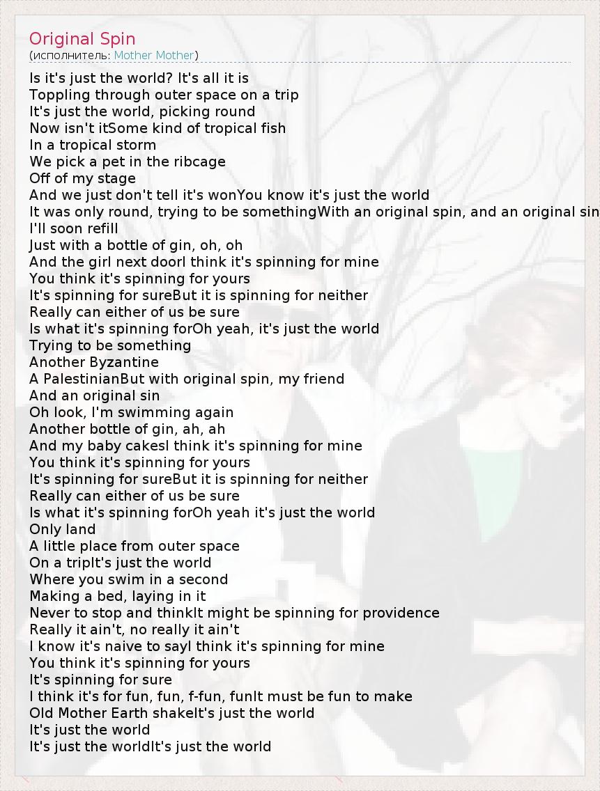 А как ты думаешь, о чем песня "Original Spin" ?