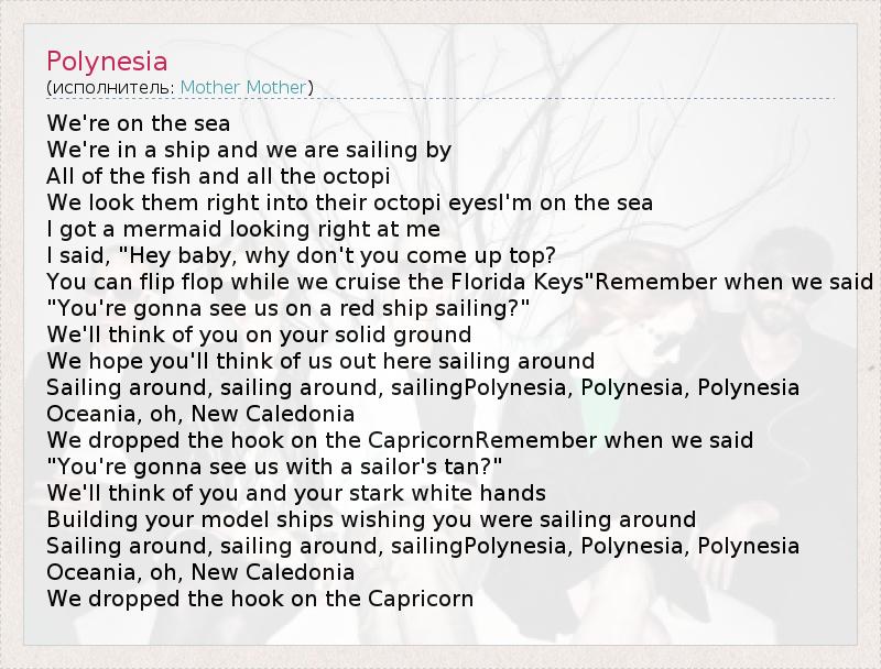Sailing around, sailing around, sailingPolynesia, Polynesia, Polynesia