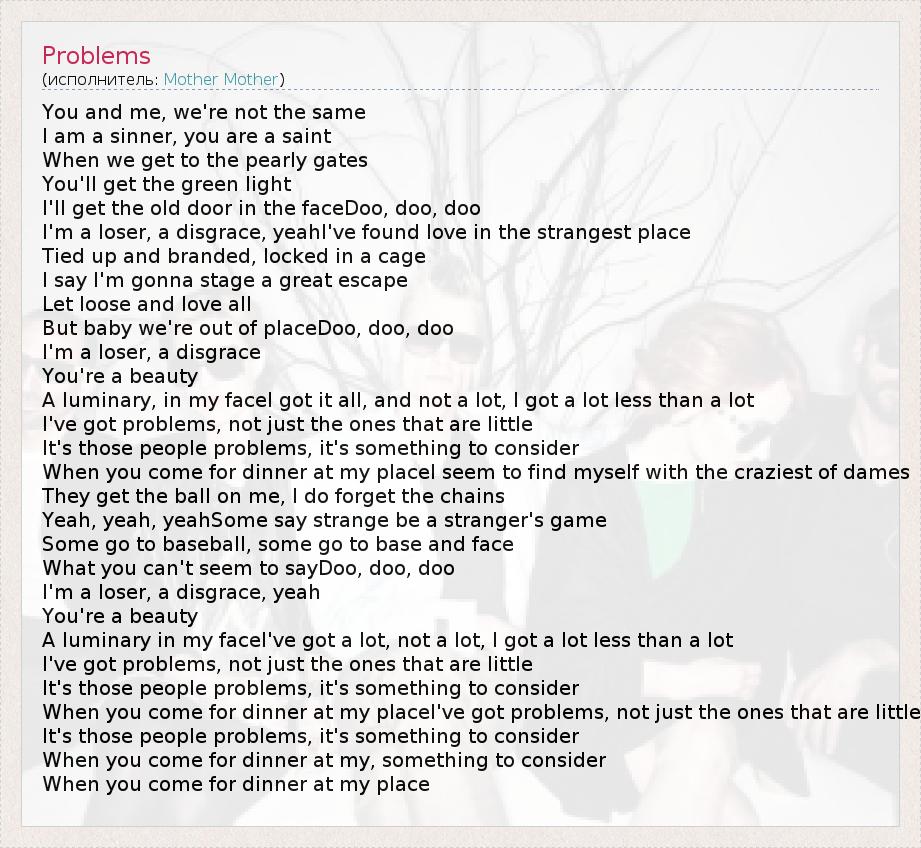 When you come for dinner at my placeI've got problems, not just the ones that are little