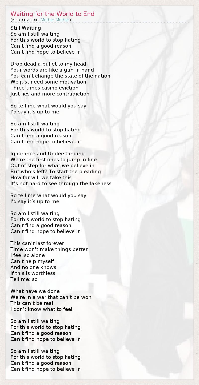 ГлавнаяИсполнителиMother MotherWaiting for the World to End