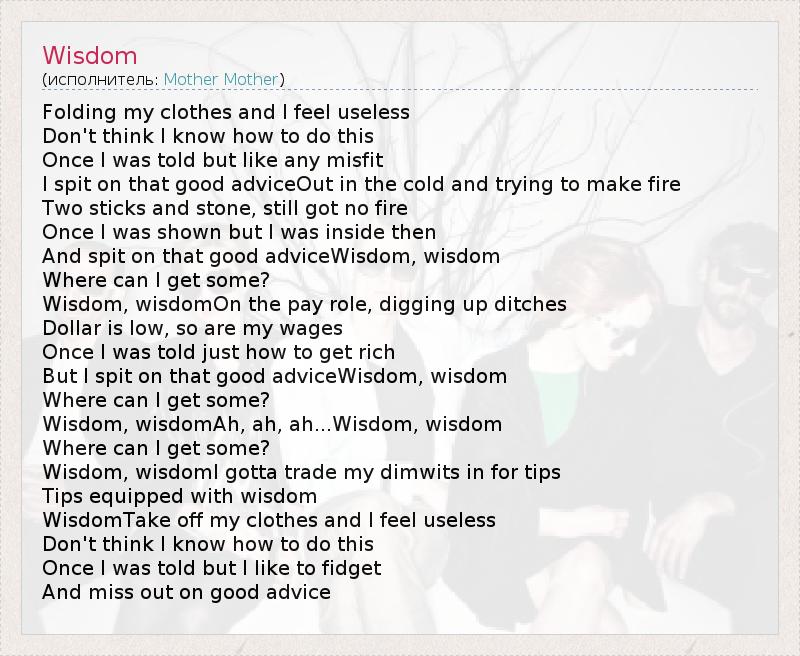 А как ты думаешь, о чем песня "Wisdom" ?