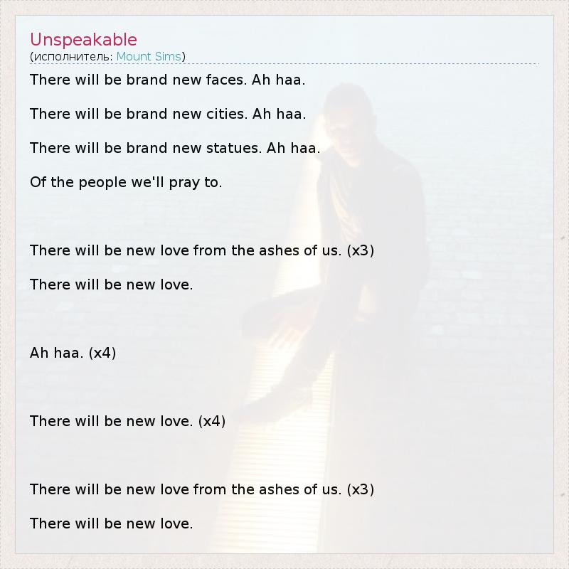 А как ты думаешь, о чем песня "Unspeakable" ?