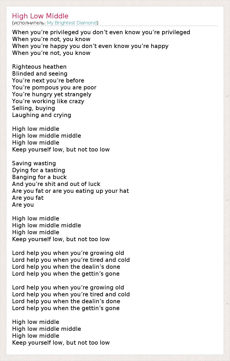 А как ты думаешь, о чем песня "High Low Middle" ?