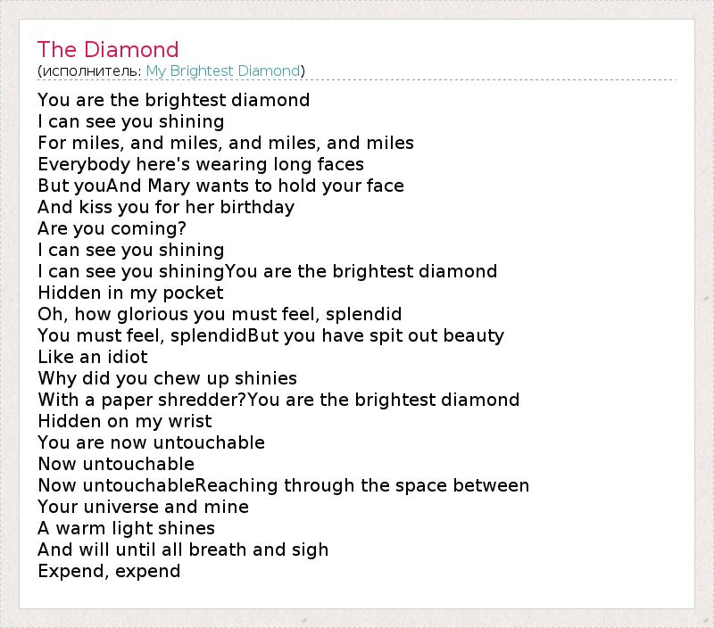 Это интересно:My Brightest Diamond — это по большому счету одна Шара Уорден, американская девушка с тонкой натурой. Она помогала делать последний альбом Суфьяна Стивенса с его напыщенными неоклассическими аранжировками; она в равной степени вдохновляется «Алисой в Зазеркалье», Трики и Томом Уэйтсом. Она выглядит как героиня трагического кабаре и поет как встревоженная нимфа. Ее второй альбом под псевдонимом,... продолжение