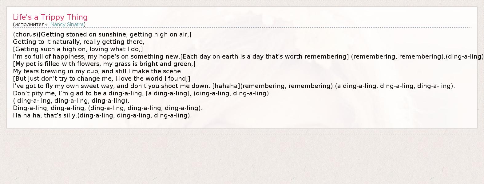 А как ты думаешь, о чем песня "Life's a Trippy Thing" ?