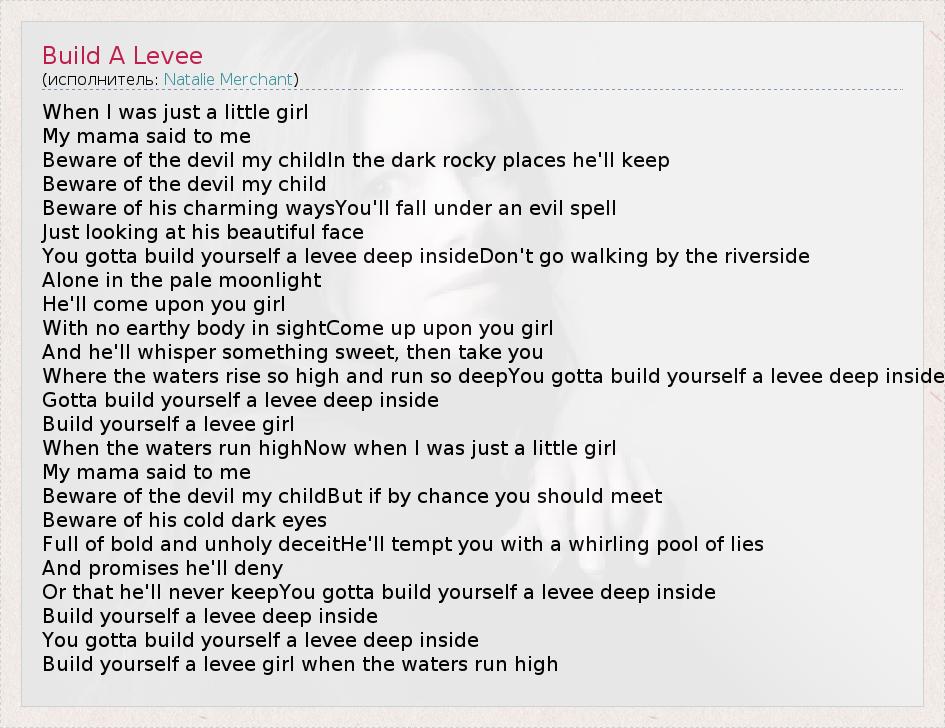 А как ты думаешь, о чем песня "Build A Levee" ?