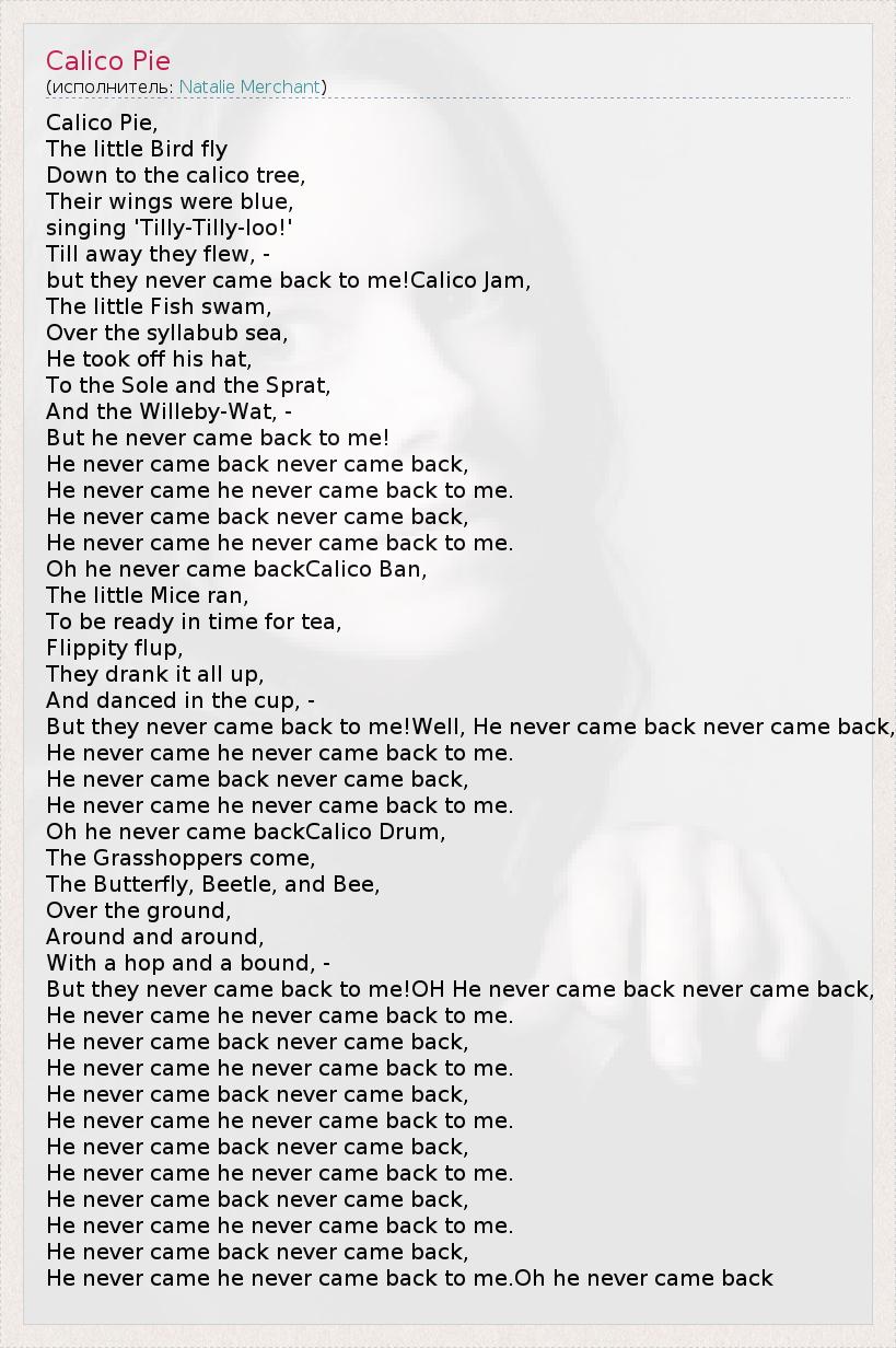 А как ты думаешь, о чем песня "Calico Pie" ?