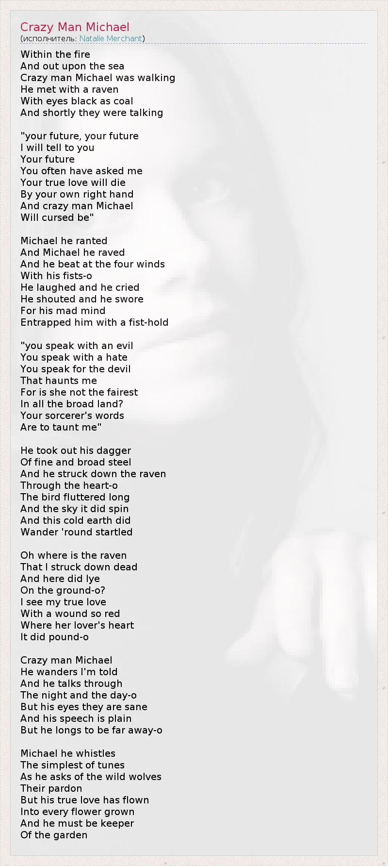 А как ты думаешь, о чем песня "Crazy Man Michael" ?