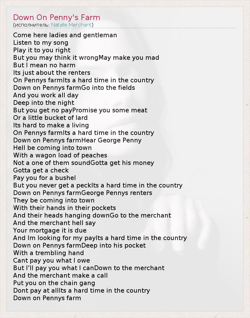 А как ты думаешь, о чем песня "Down On Penny's Farm" ?