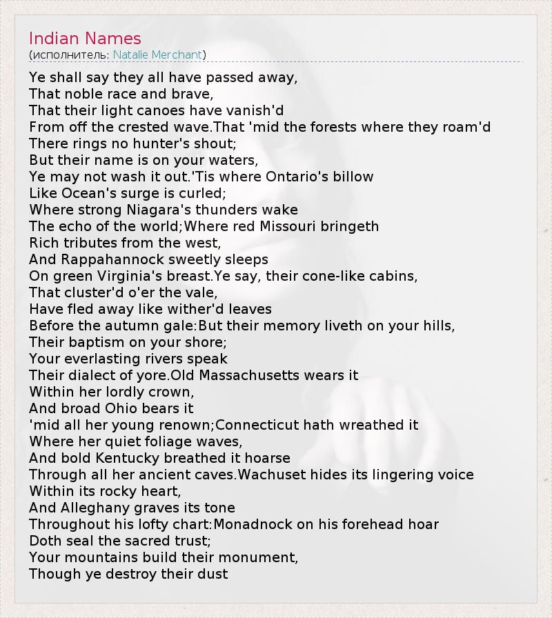 А как ты думаешь, о чем песня "Indian Names" ?