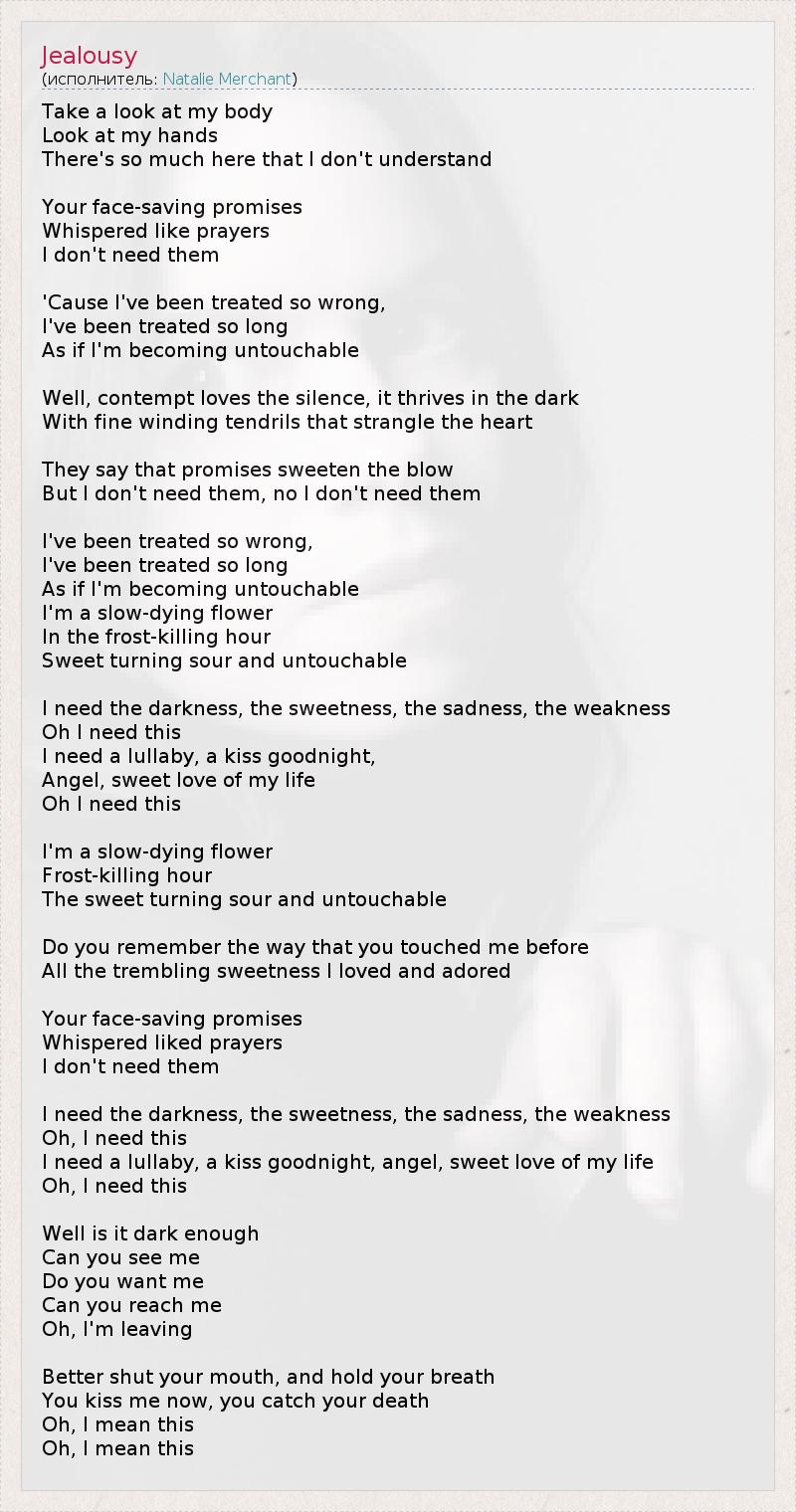 Мне нужна и темнота и сладость, твоя печаль и слабость,