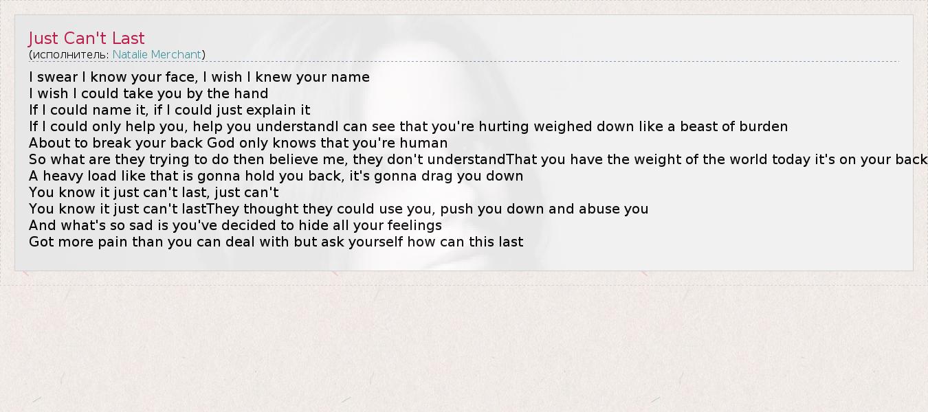 А как ты думаешь, о чем песня "Just Can't Last" ?