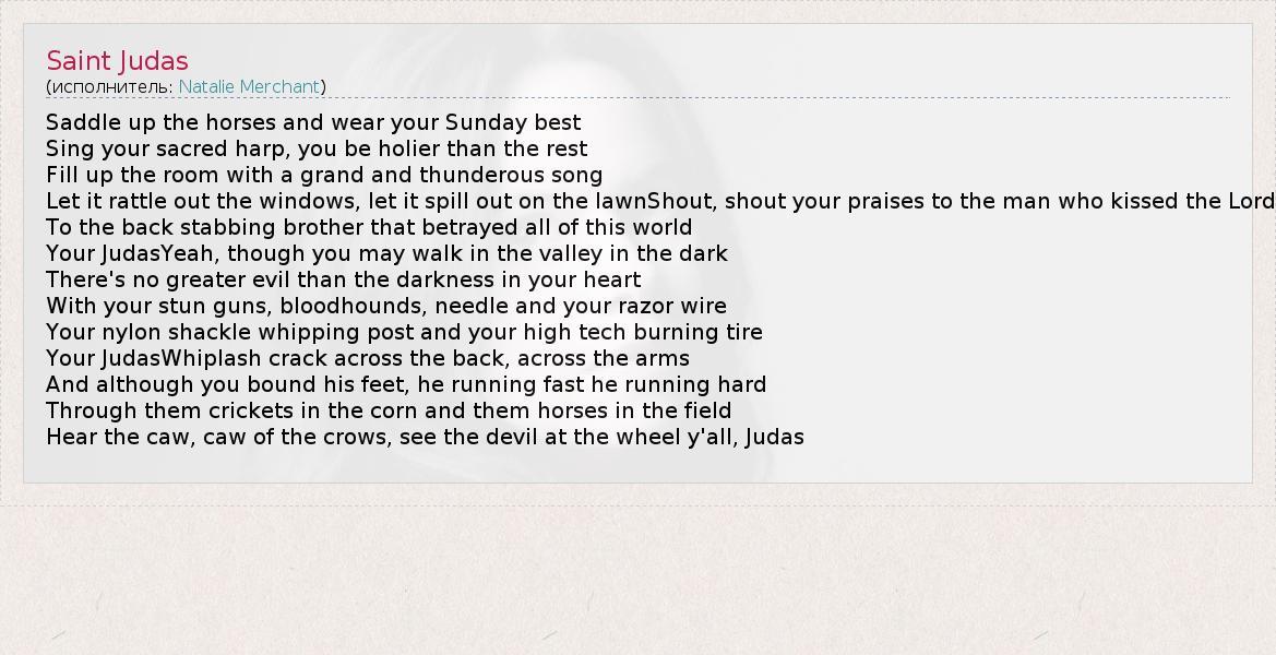 А как ты думаешь, о чем песня "Saint Judas" ?