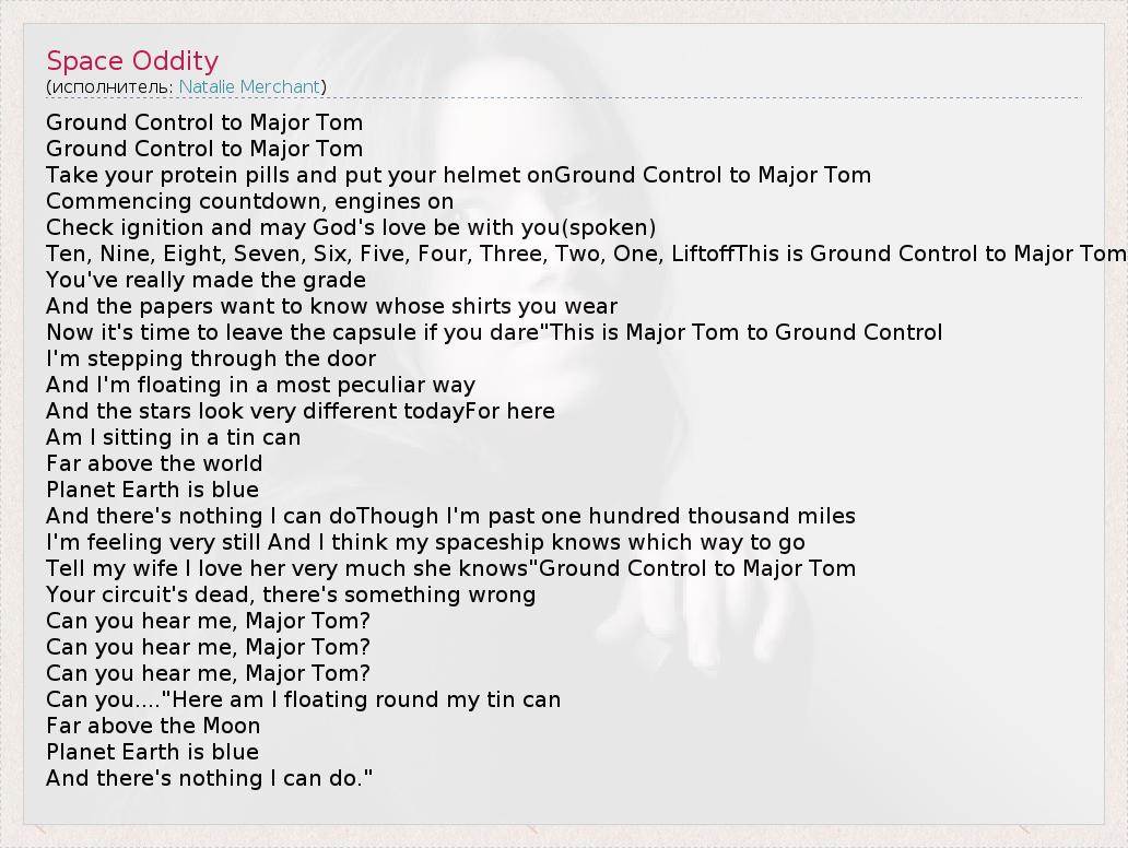 А как ты думаешь, о чем песня "Space Oddity" ?