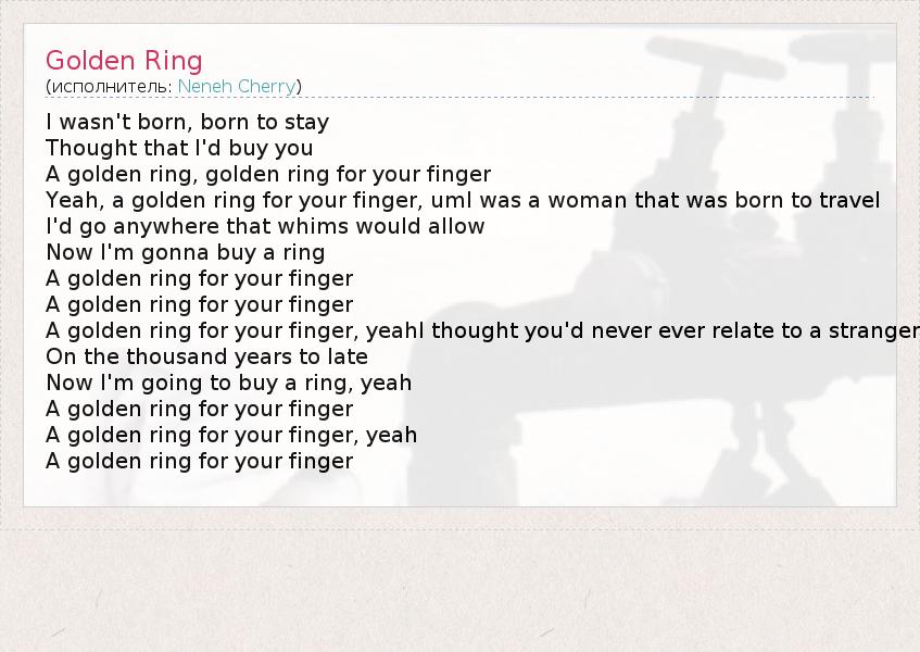 А как ты думаешь, о чем песня "Golden Ring" ?