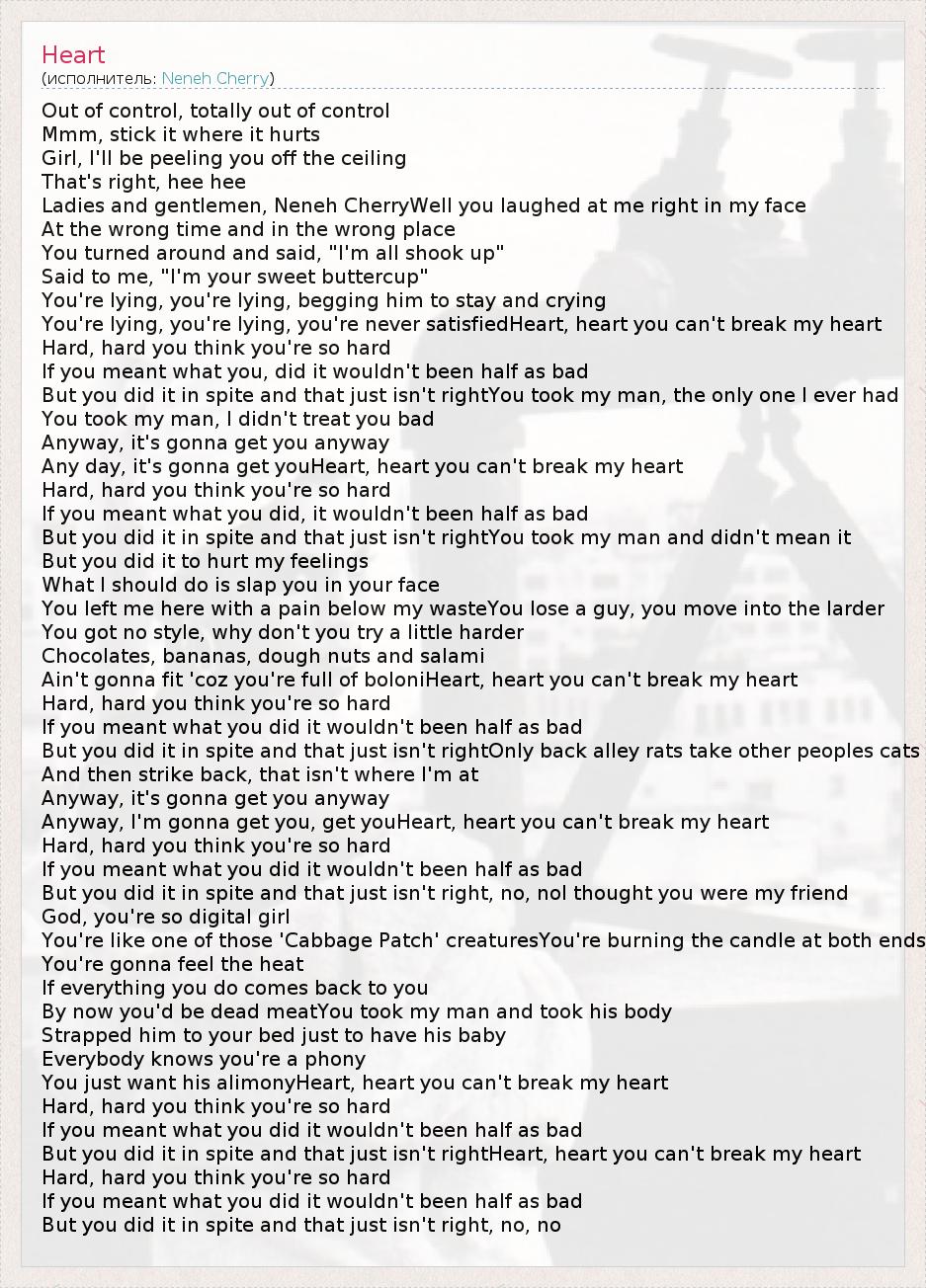 But you did it in spite and that just isn't rightHeart, heart you can't break my heart