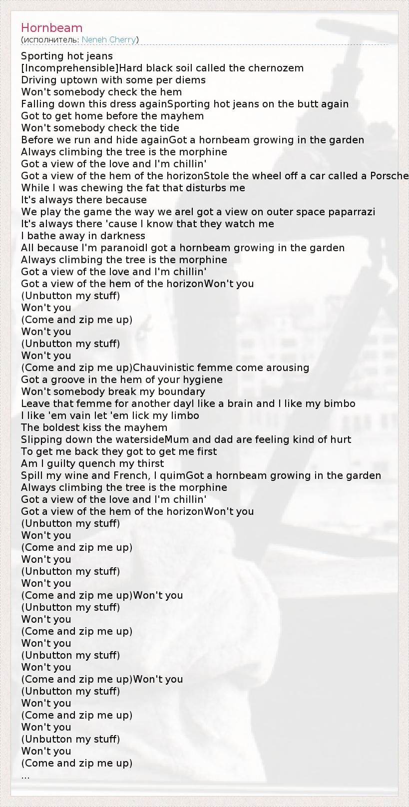 А как ты думаешь, о чем песня "Hornbeam" ?