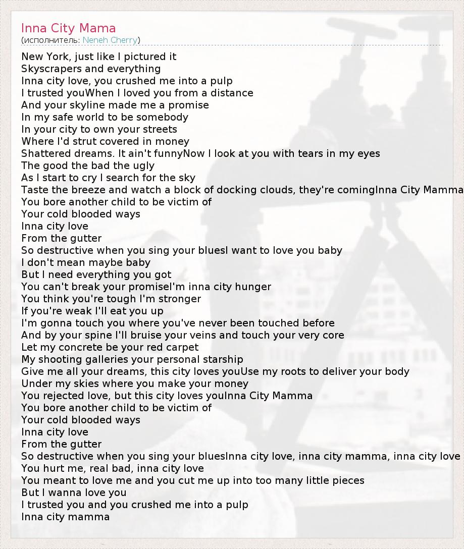 So destructive when you sing your bluesInna city love, inna city mamma, inna city love