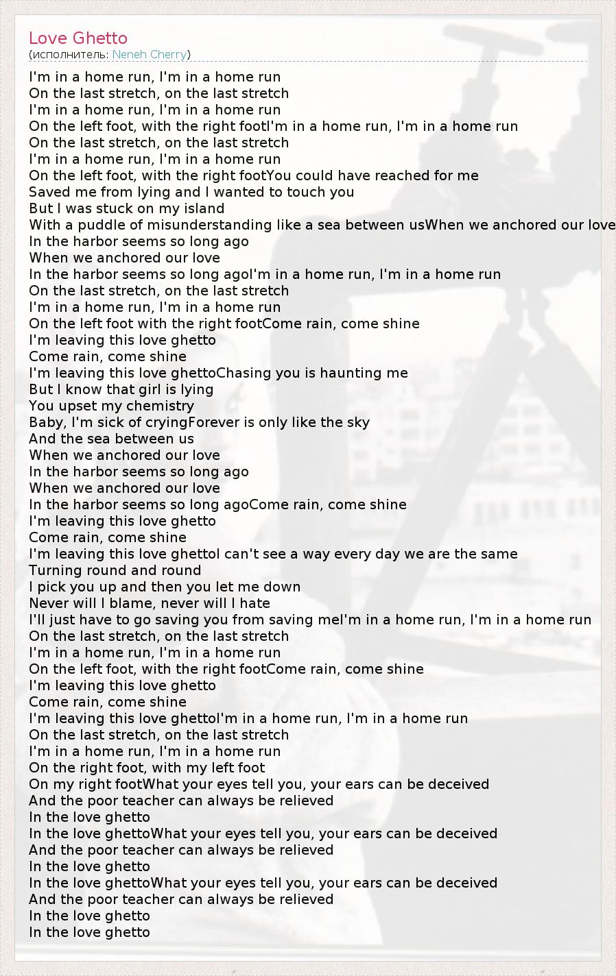 А как ты думаешь, о чем песня "Love Ghetto" ?