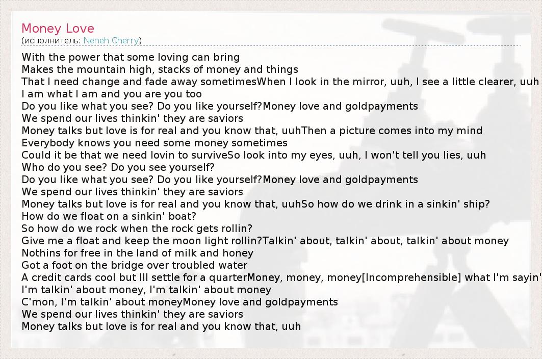 Money talks but love is for real and you know that, uuhThen a picture comes into my mind