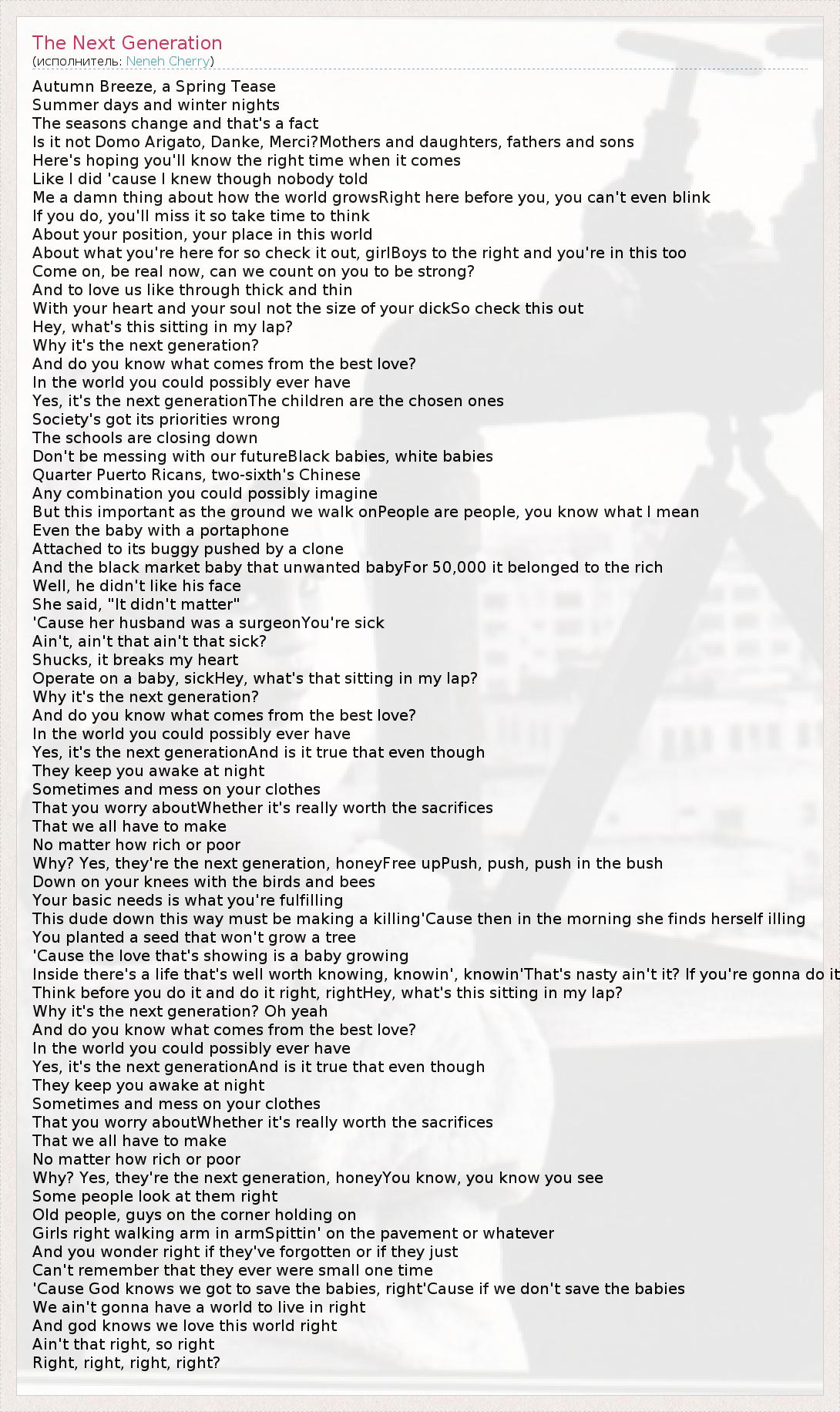 А как ты думаешь, о чем песня "The Next Generation" ?