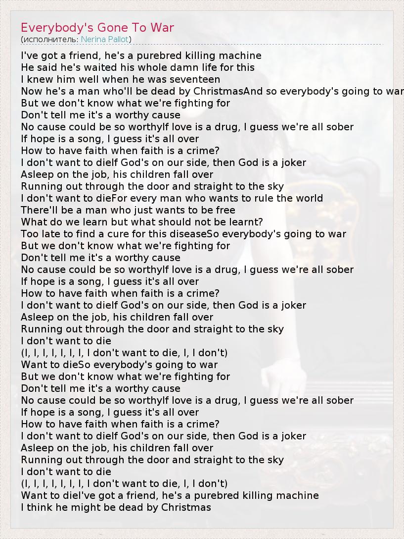 А как ты думаешь, о чем песня "Everybody's Gone To War" ?