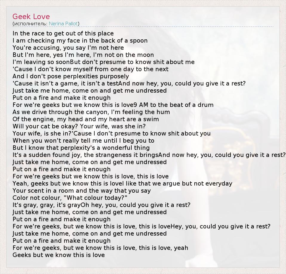 For we're geeks, but we know this is love, this is loveHey, you, could you give it a rest?