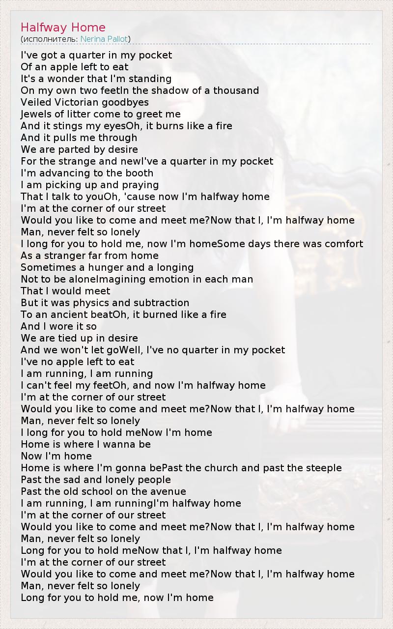 А как ты думаешь, о чем песня "Halfway Home" ?