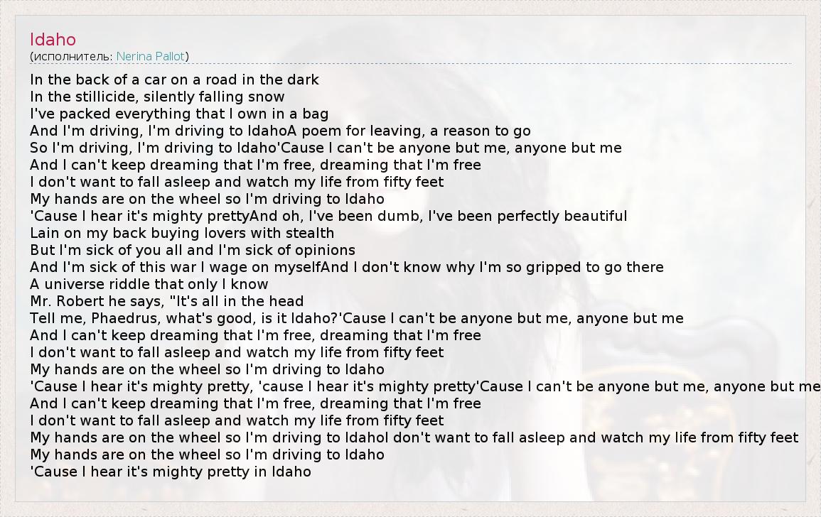 And I'm driving, I'm driving to IdahoA poem for leaving, a reason to go