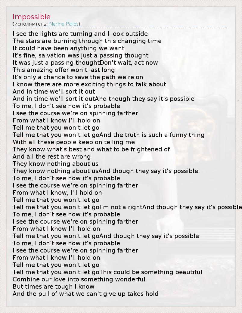 А как ты думаешь, о чем песня "Impossible" ?