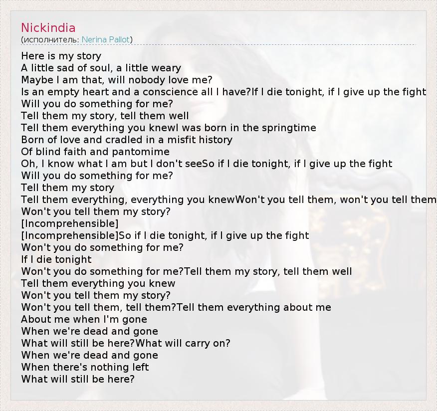 А как ты думаешь, о чем песня "Nickindia" ?