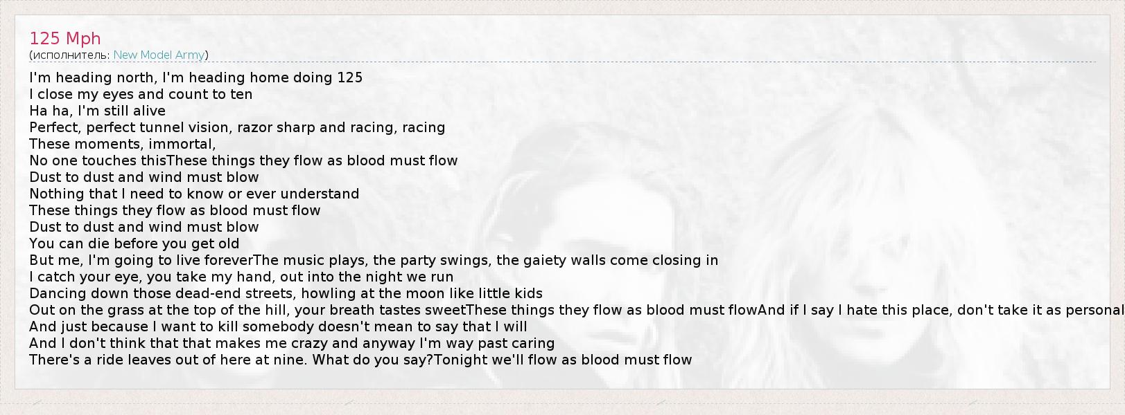 А как ты думаешь, о чем песня "125 Mph" ?