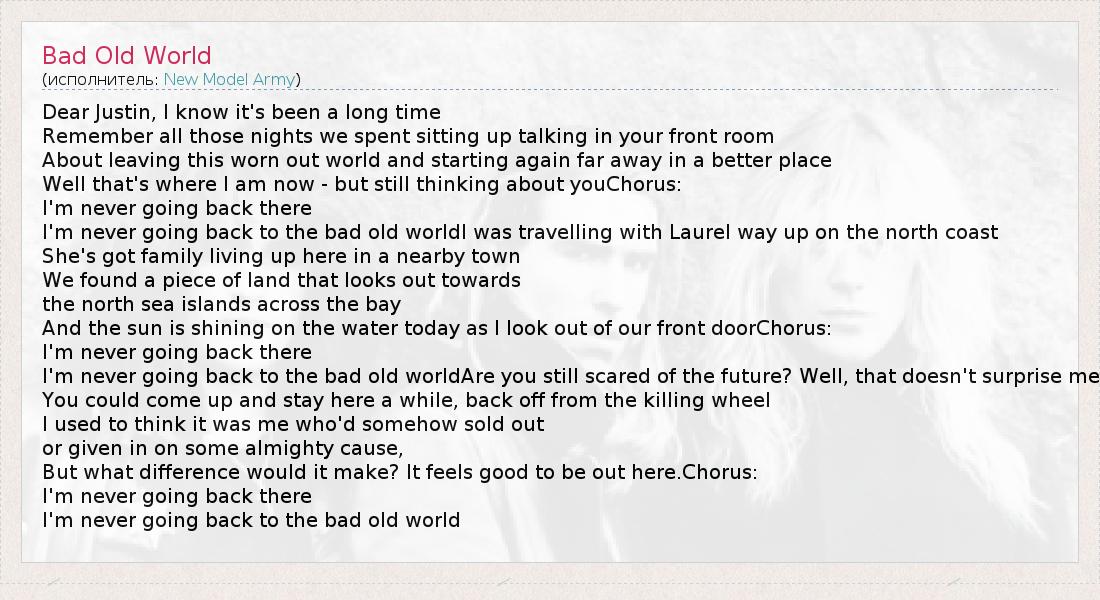 А как ты думаешь, о чем песня "Bad Old World" ?