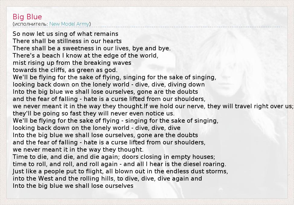 А как ты думаешь, о чем песня "Big Blue" ?