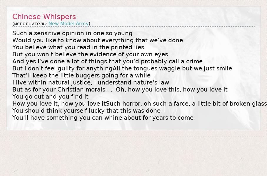 А как ты думаешь, о чем песня "Chinese Whispers" ?