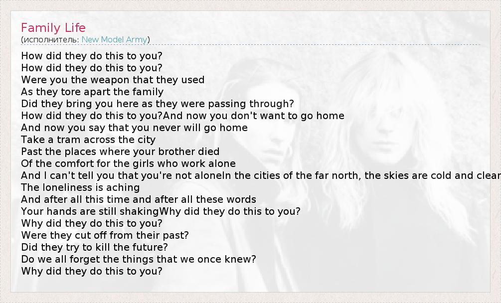 А как ты думаешь, о чем песня "Family Life" ?