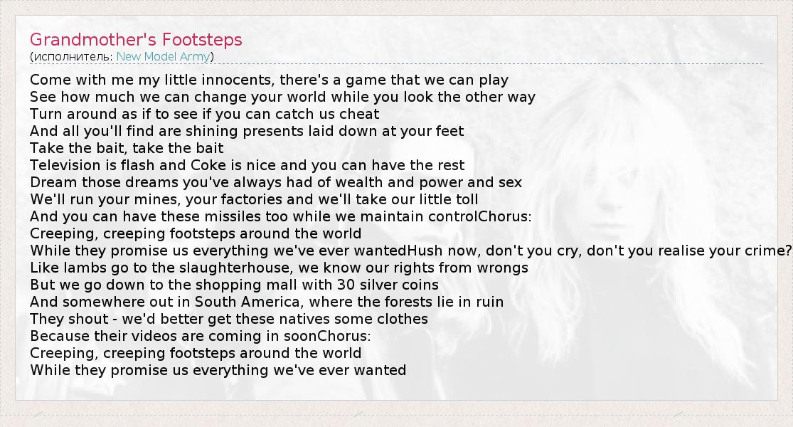 А как ты думаешь, о чем песня "Grandmother's Footsteps" ?