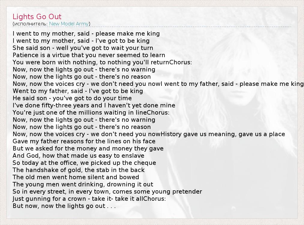 А как ты думаешь, о чем песня "Lights Go Out" ?