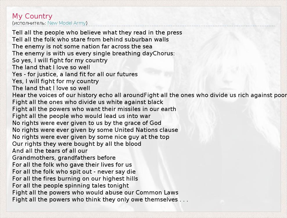 Это интересно:1980—1989New Model Army (заимствовавшие название у военной организации под предводительством Оливера Кромвеля) образовались в Брэдфорде, графство Йоркшир, в 1980 году под предводительством поющего гитариста Слэйда-Уравнителя (Slade The Leveller, он же Джастин Салливан, родился 8 апреля 1956 года в Букингемшире, Англия). Соавтором идеи можно считать его подругу, писательницу и поэтессу Джулз Денби (Joolz... продолжение