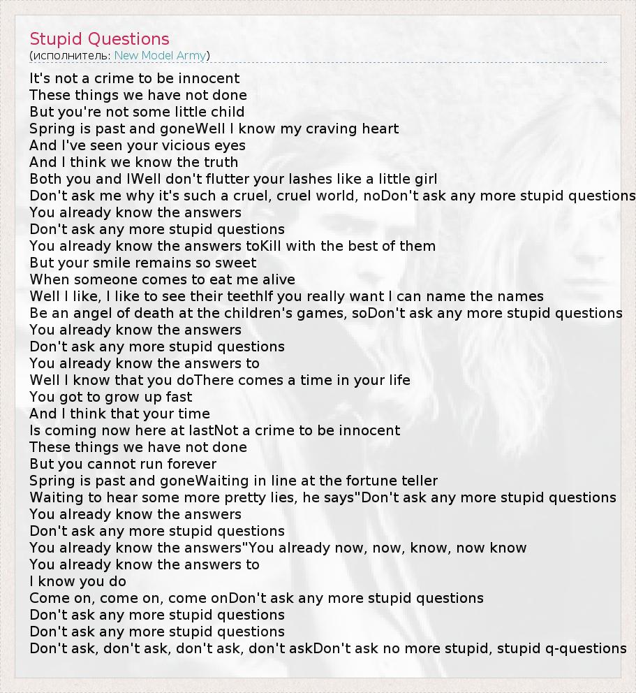 А как ты думаешь, о чем песня "Stupid Questions" ?