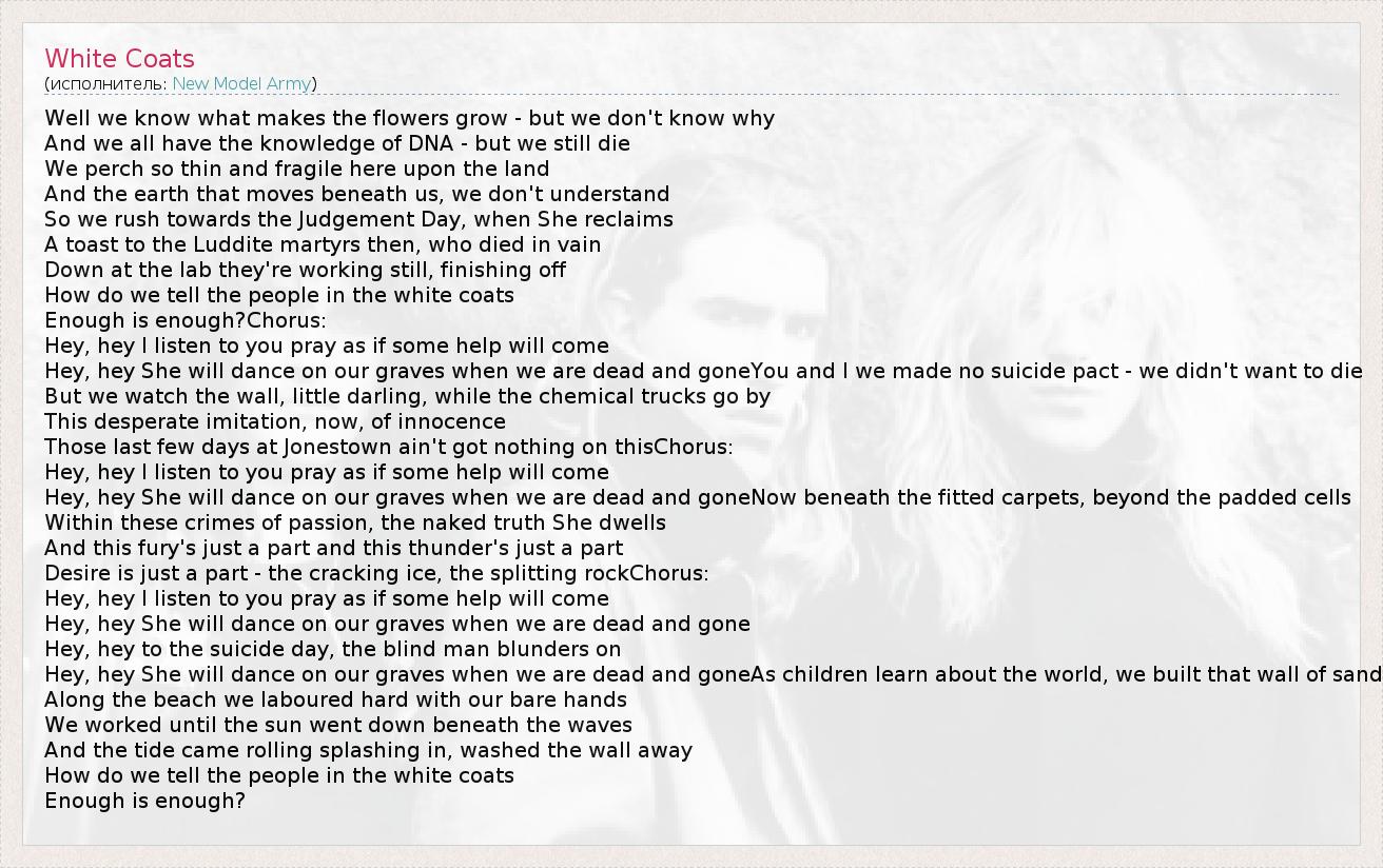 Это интересно:1980—1989New Model Army (заимствовавшие название у военной организации под предводительством Оливера Кромвеля) образовались в Брэдфорде, графство Йоркшир, в 1980 году под предводительством поющего гитариста Слэйда-Уравнителя (Slade The Leveller, он же Джастин Салливан, родился 8 апреля 1956 года в Букингемшире, Англия). Соавтором идеи можно считать его подругу, писательницу и поэтессу Джулз Денби (Joolz... продолжение