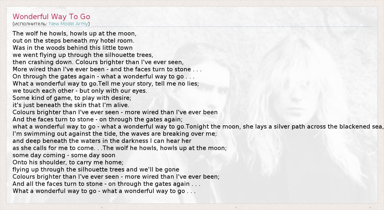 А как ты думаешь, о чем песня "Wonderful Way To Go" ?