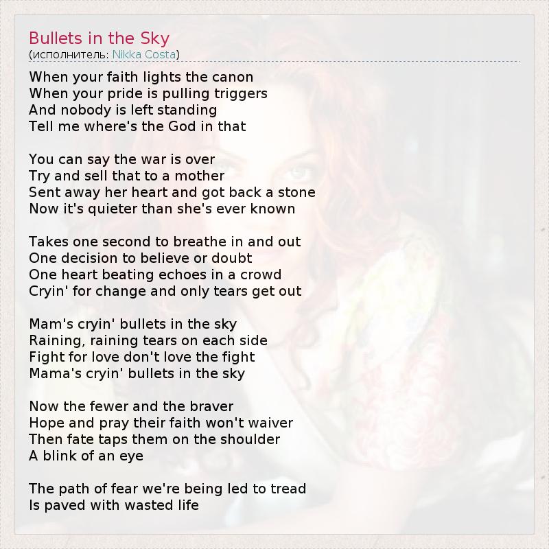 А как ты думаешь, о чем песня "Bullets in the Sky" ?