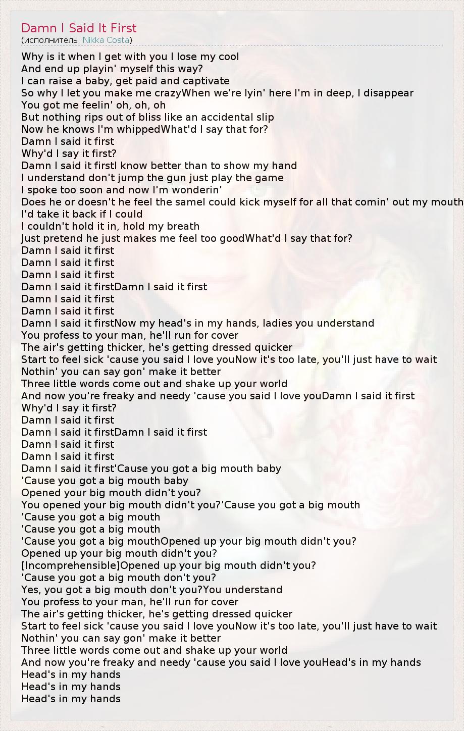 А как ты думаешь, о чем песня "Damn I Said It First" ?